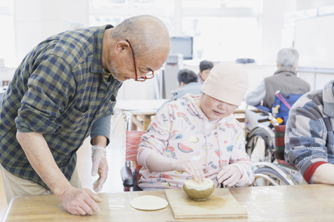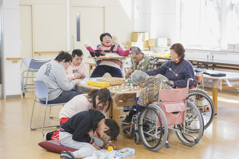 常に介護が必要な方に、昼間施設で入浴・排泄・食事などの介護と機能訓練、創作活動・生産活動を提供致します。